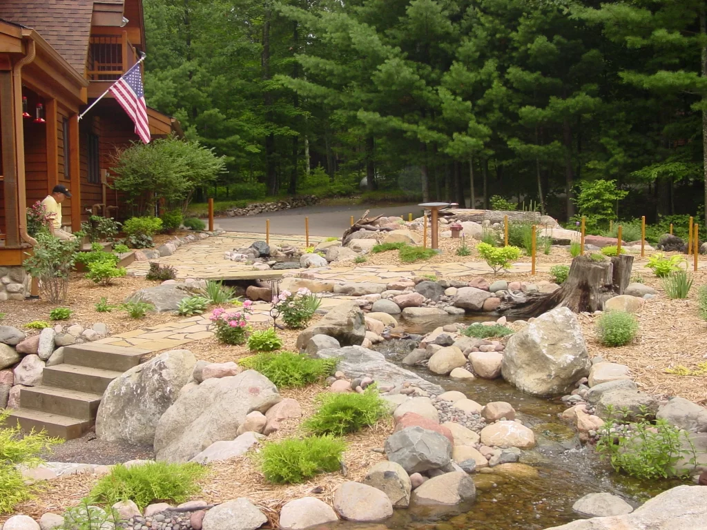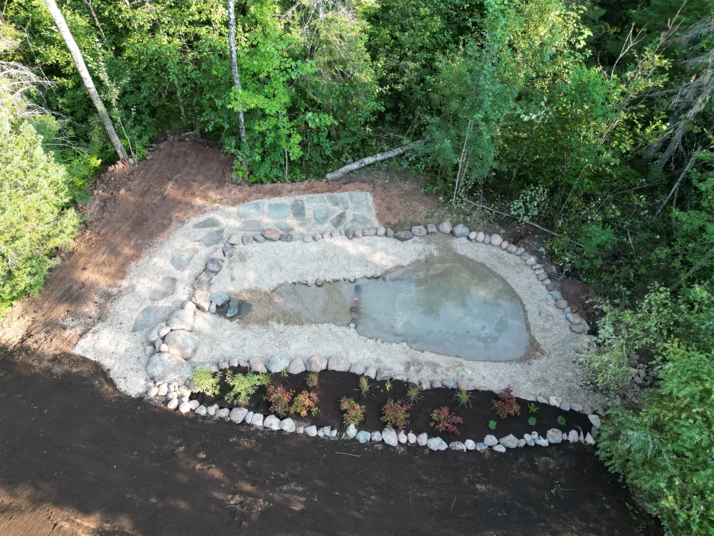 Missinne designs and installs custom ponds, stone waterfalls, pondless water features, and garden fountains for Solon Springs homeowners and cabin owners who want their outdoor space to reflect everything that makes northern Wisconsin worth living in. Built for the landscape. Built for the climate. Built to last.